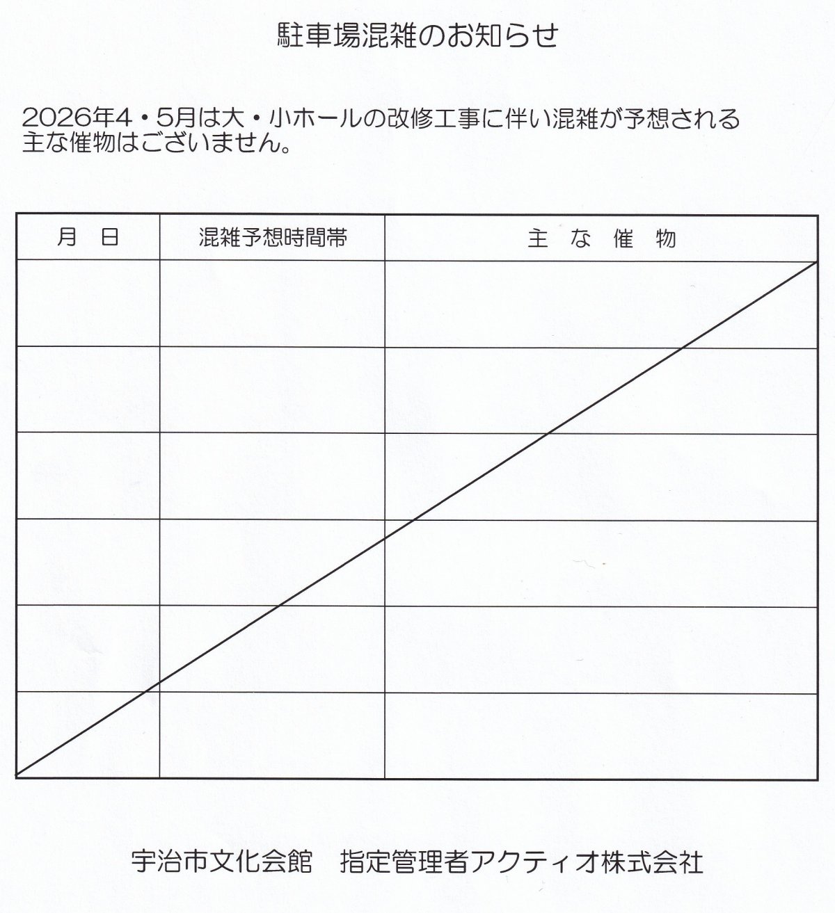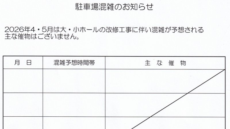 文化センター駐車場混雑のお知らせ 2026年4月・5月