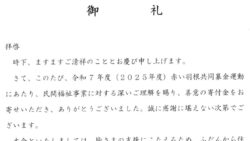 宇治市その他 日本赤十字社 活動資金募金のお礼状 2025年11月09日
