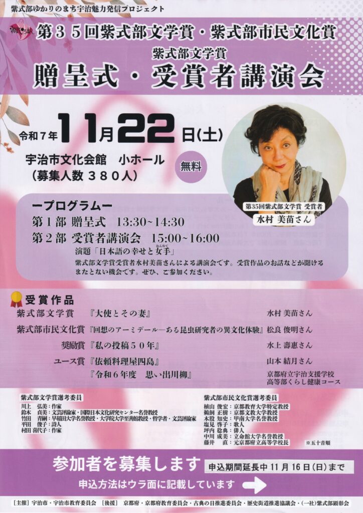 第35回紫式部文学賞 贈呈式・受賞者講演会 2025年11月22日