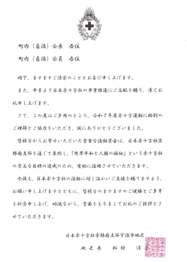 日本赤十字社 活動資金募金のお礼状 2025年11月09日