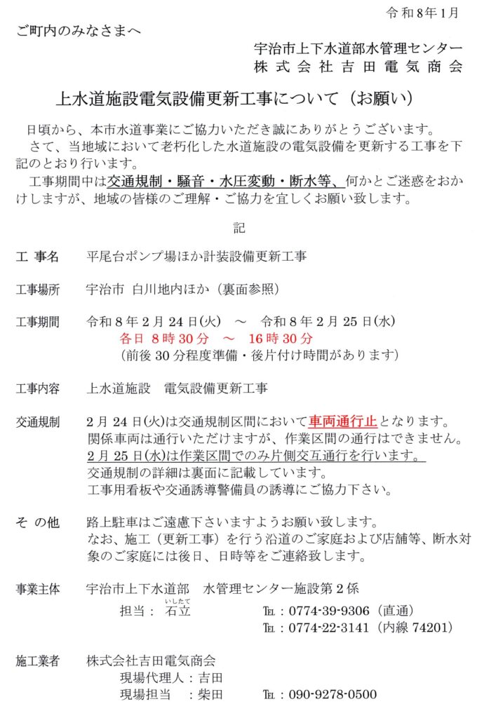 上水道施設電気設備更新工事について 2026年2月24日~25日