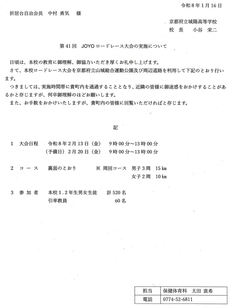 第41回城陽ロードレース大会の実施について 2026年2月13日