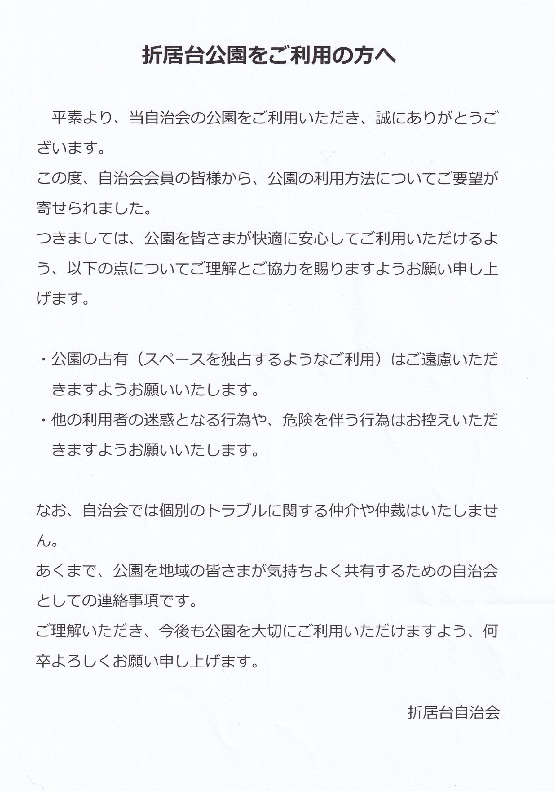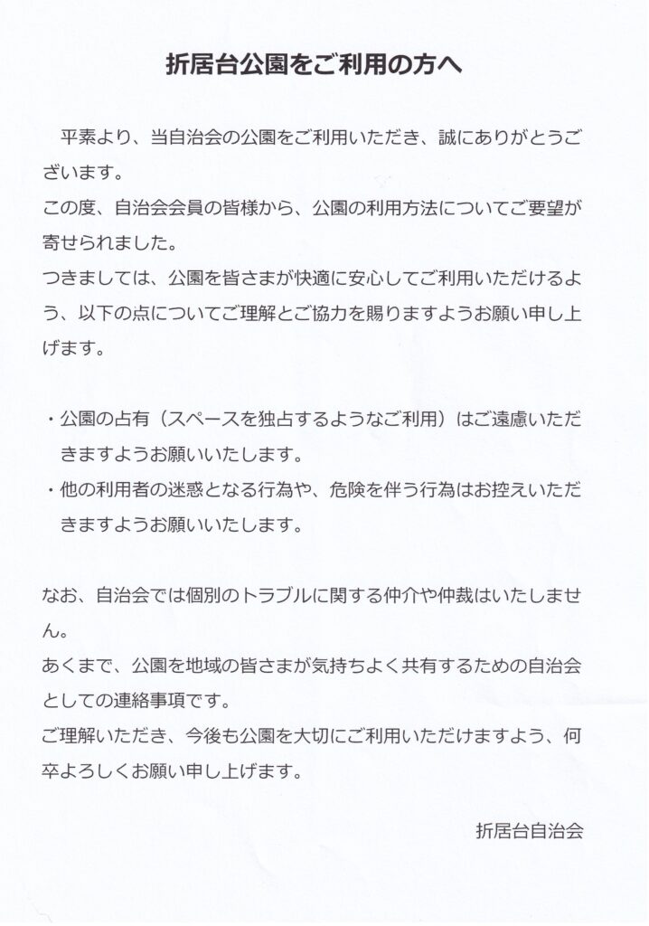 折居台公園をご利用の方へ 2026年4月06日
