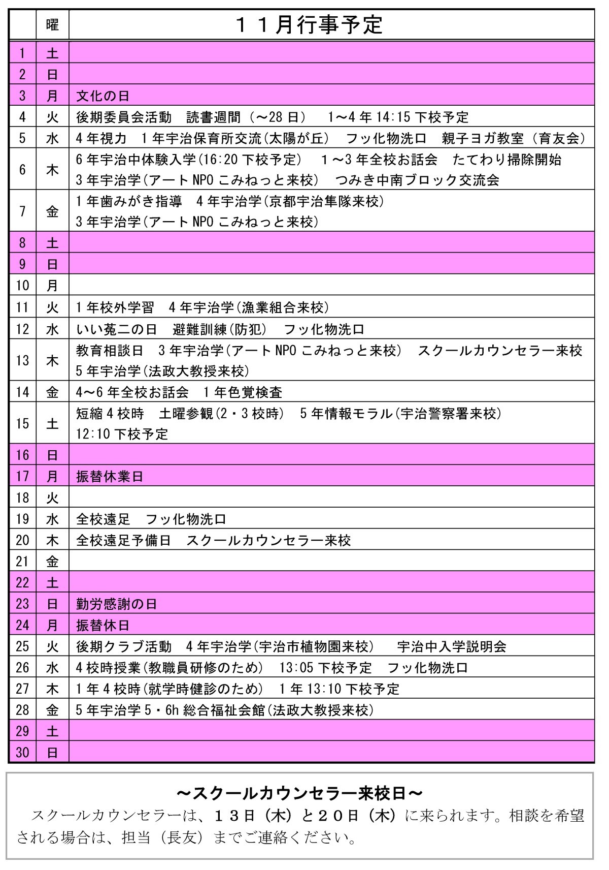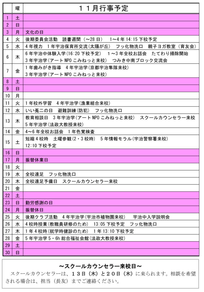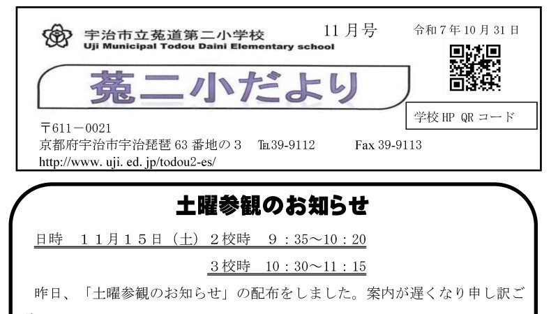 菟二小だより 11月号