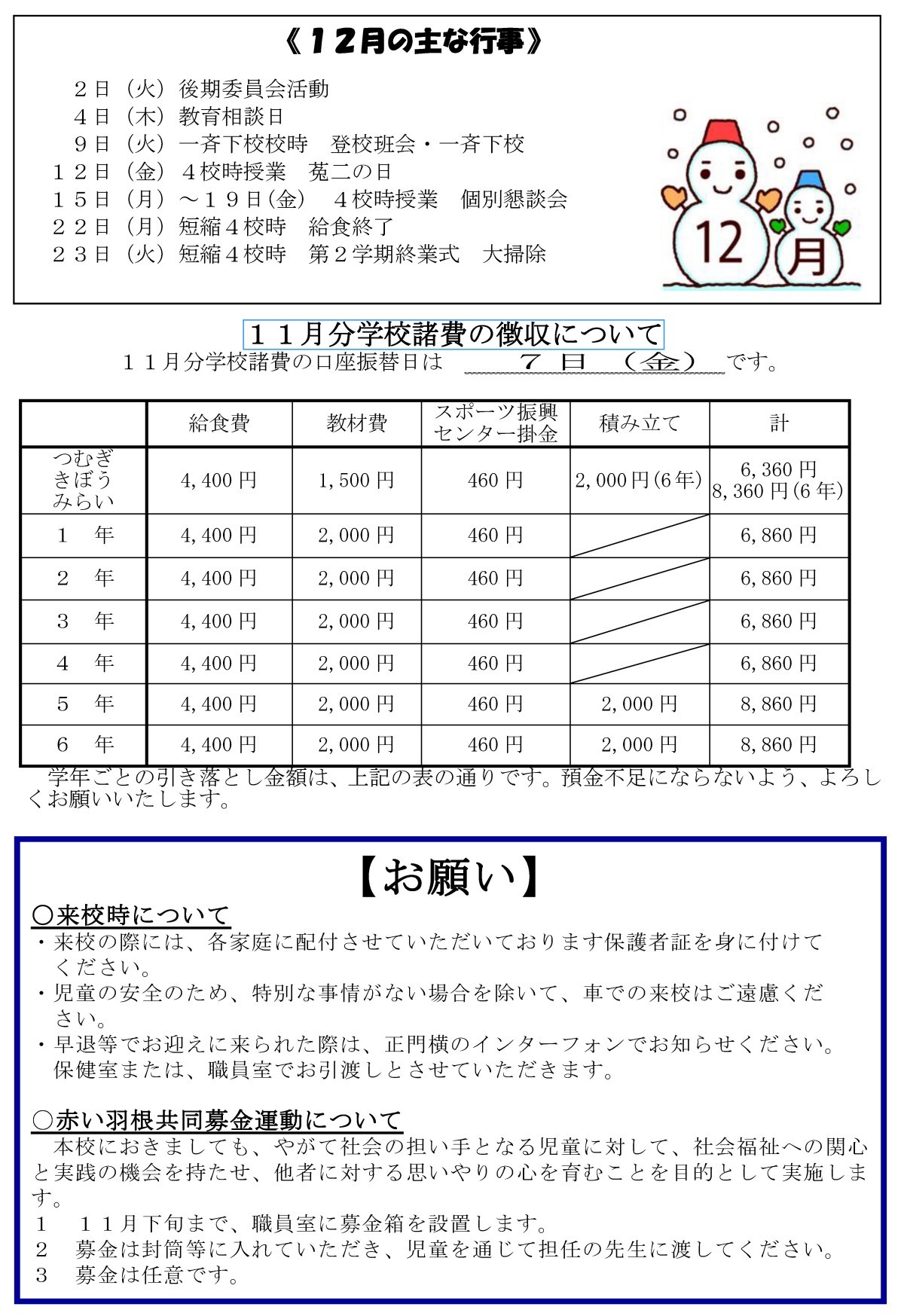 お知らせとお願い