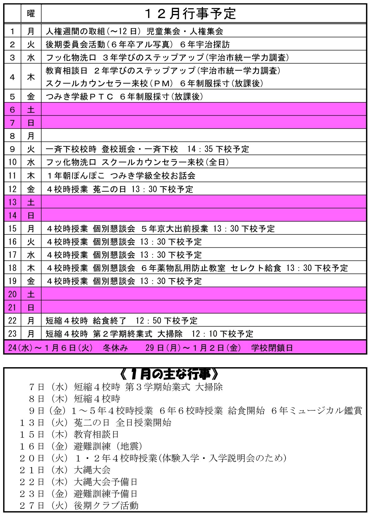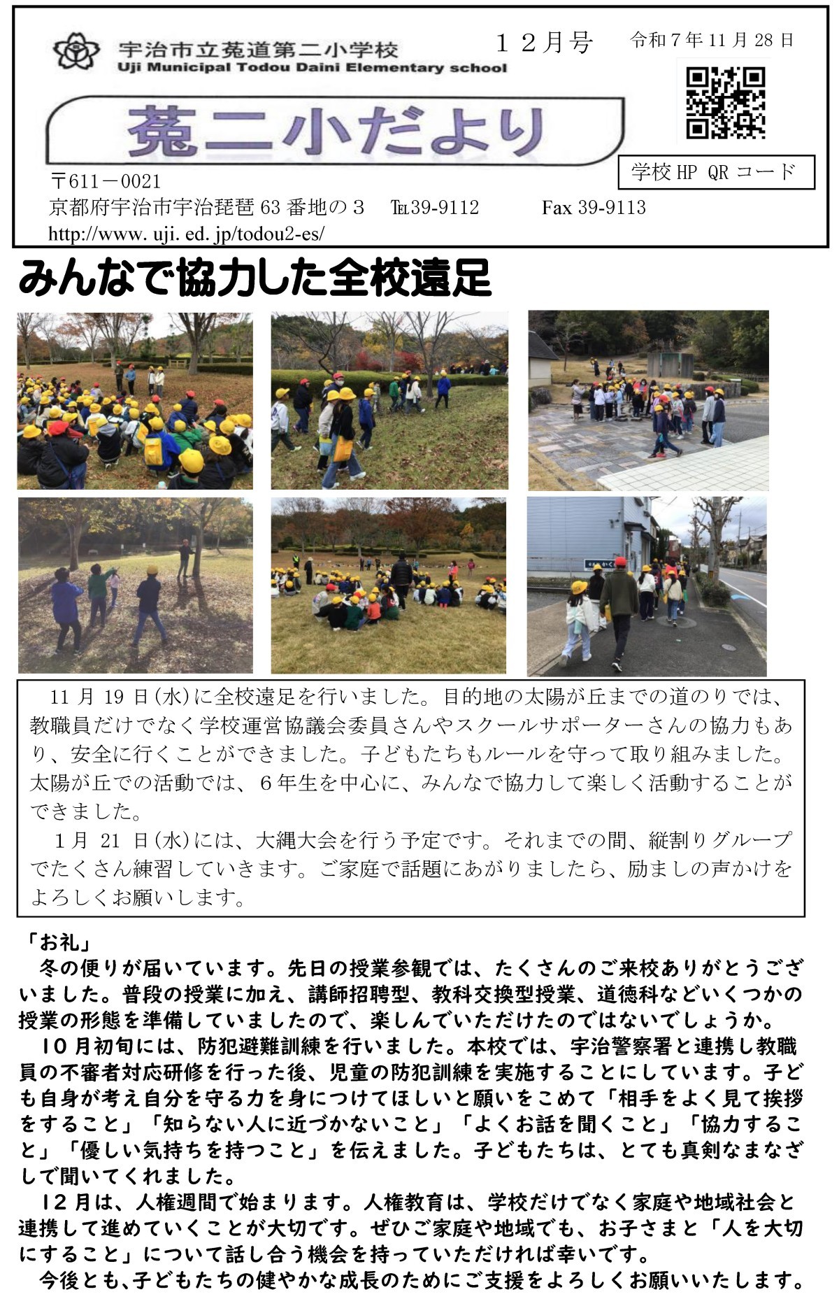 菟道小だより 12月号