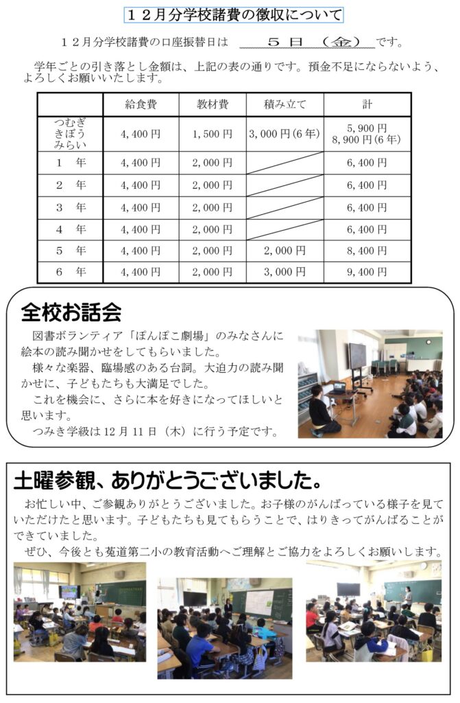 菟二小だより 12月号
