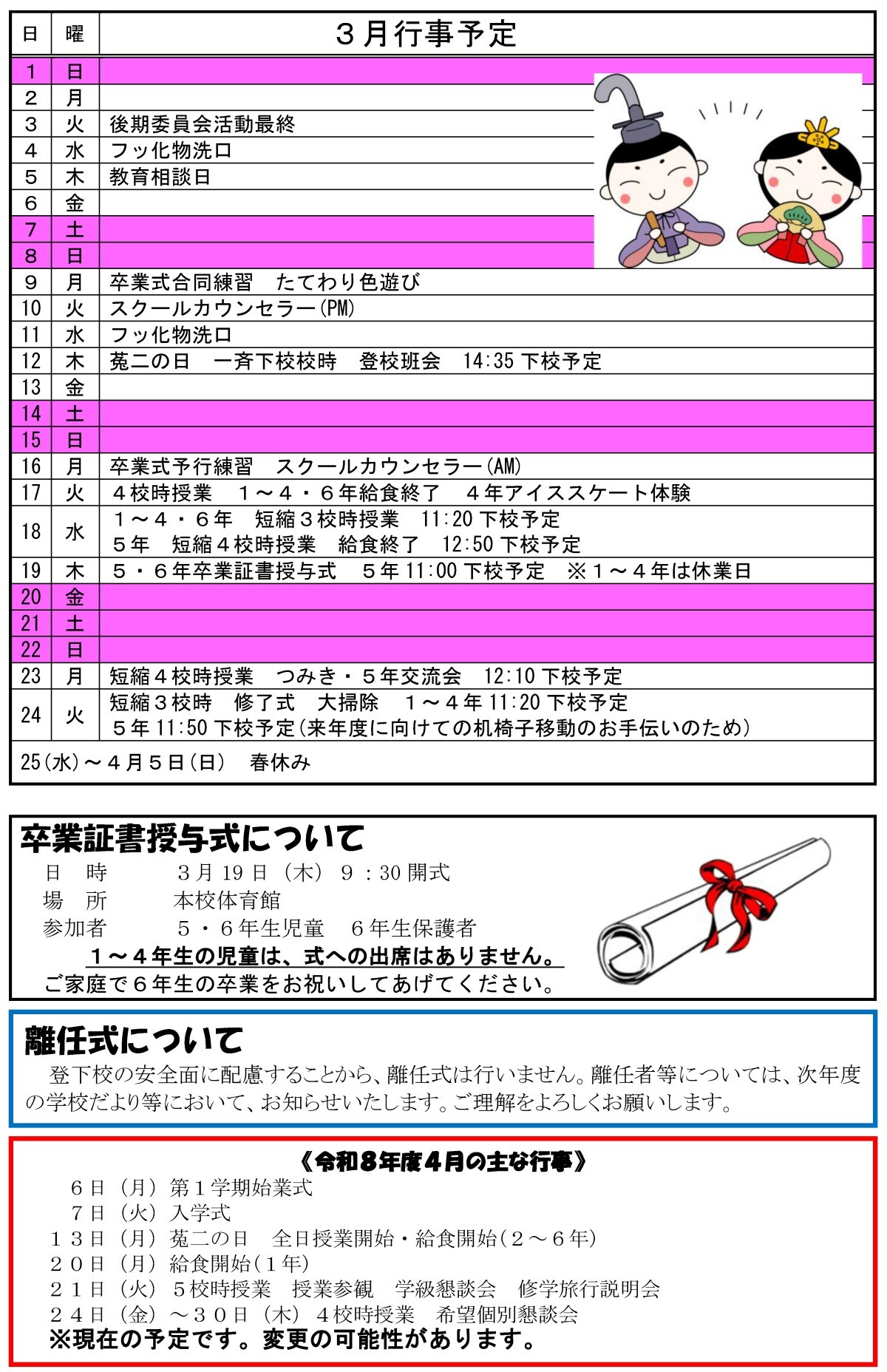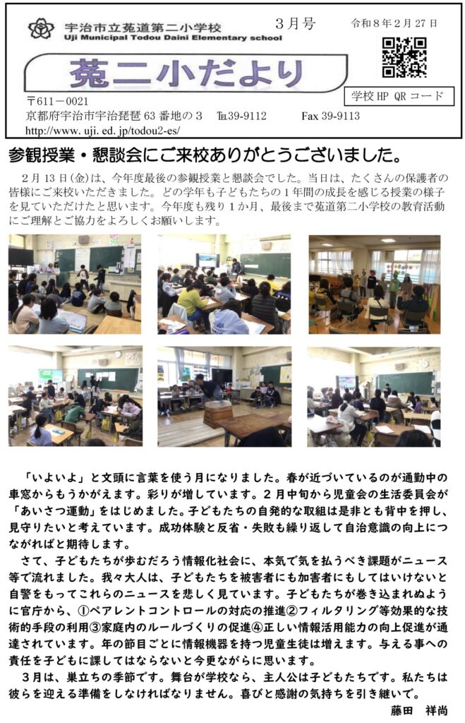 菟道小だより 2026年3月号