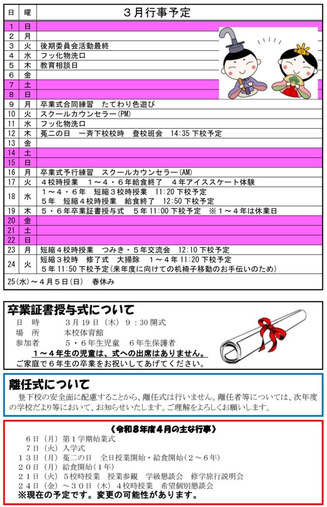 菟二小だより 2026年3月号