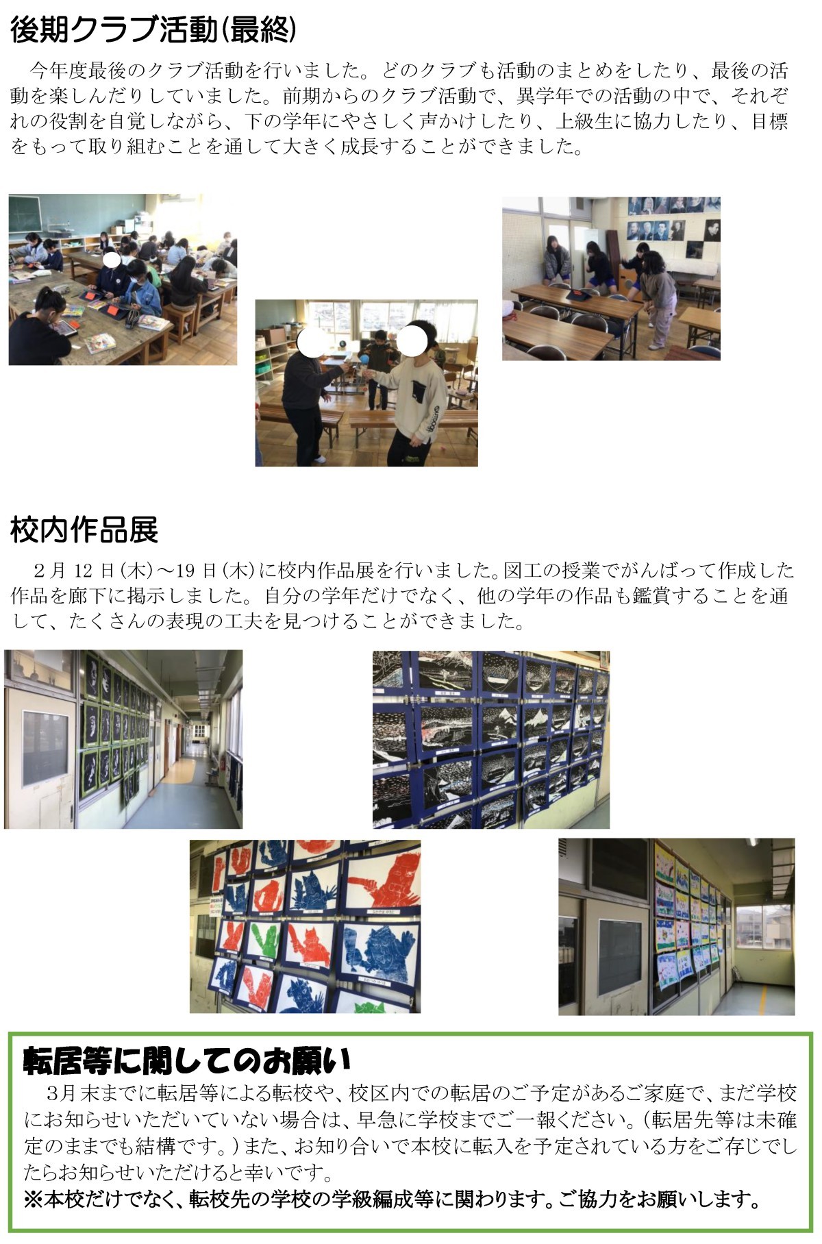 お知らせとお願い